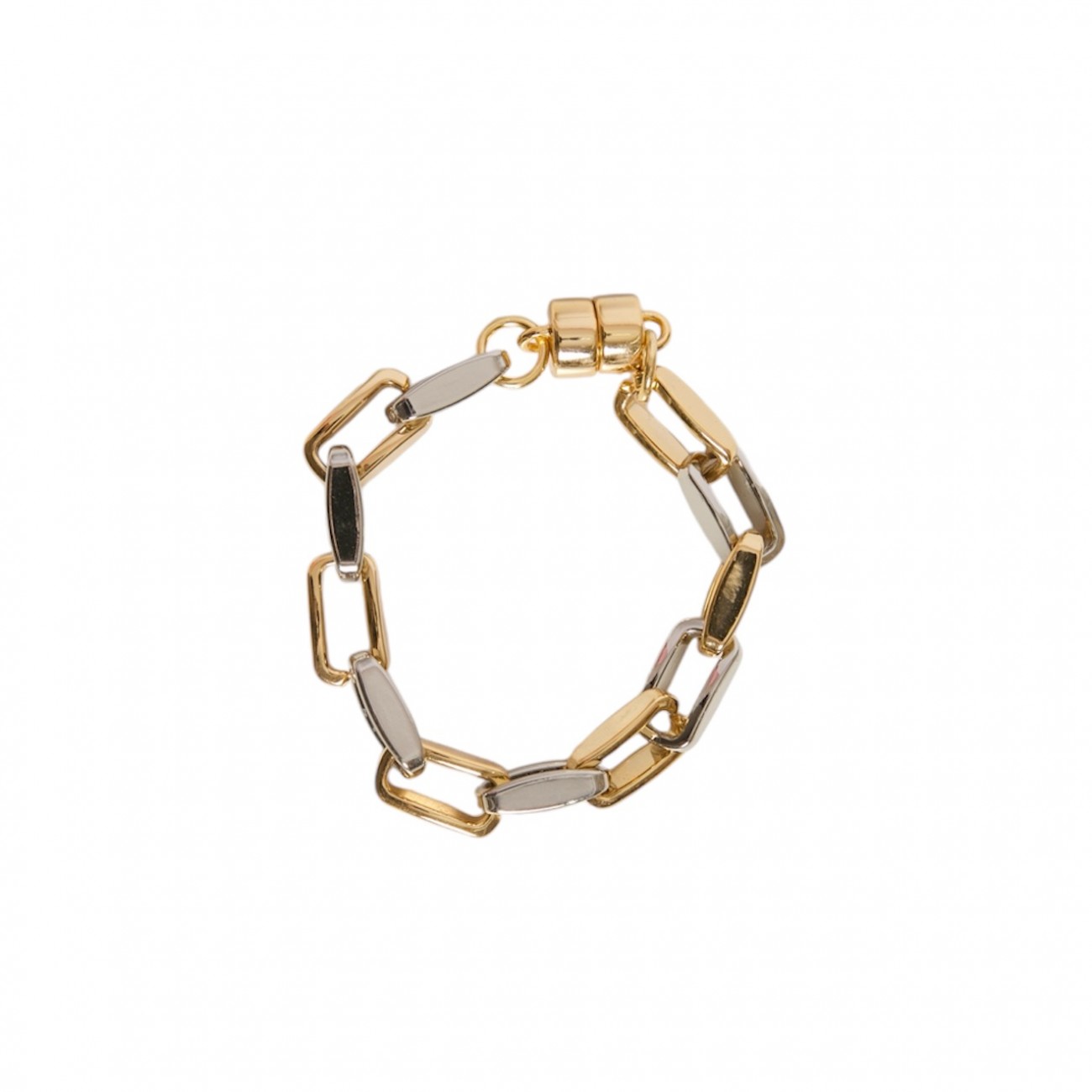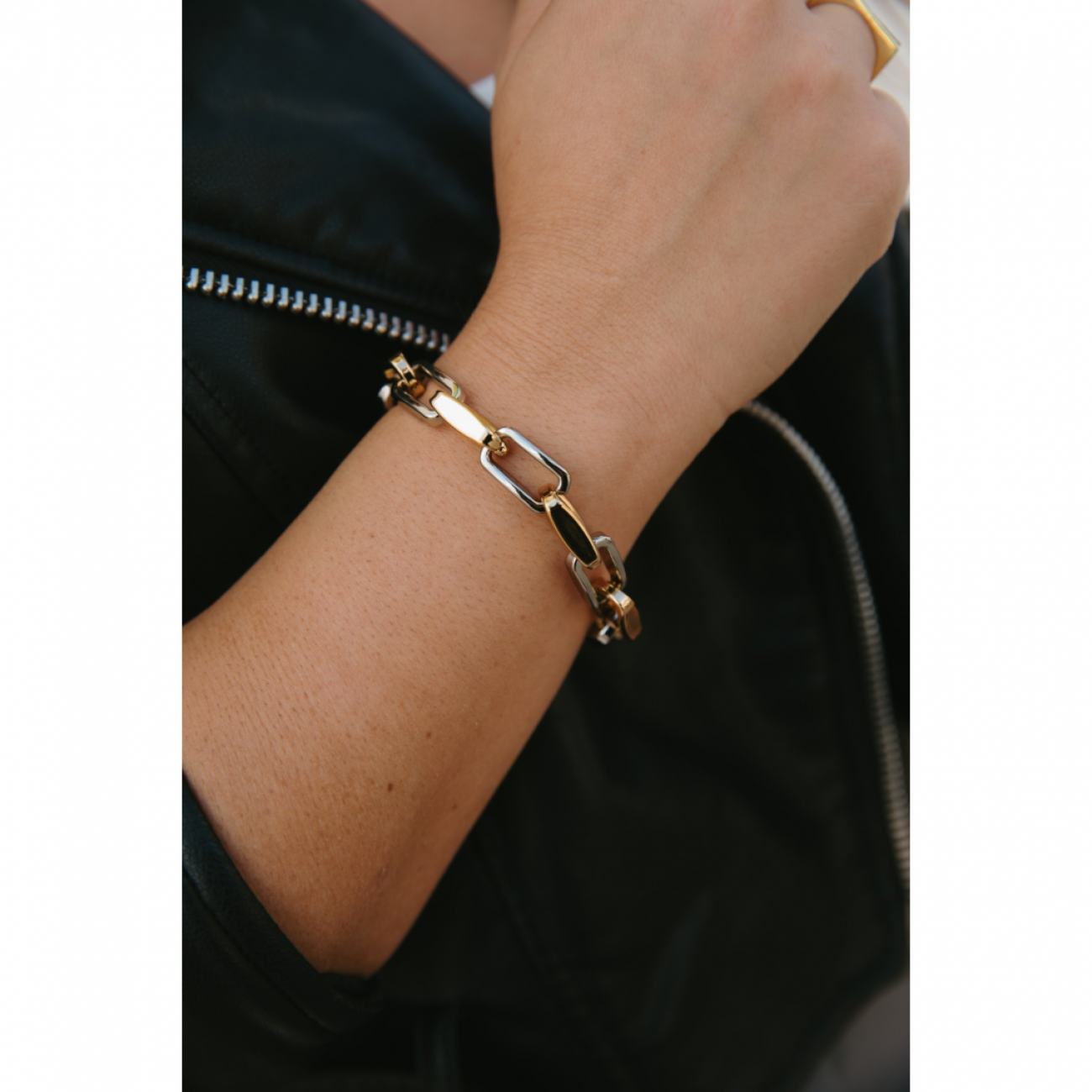 Bracciale in acciaio placcato oro a forma di catena quadrata bicolor.
