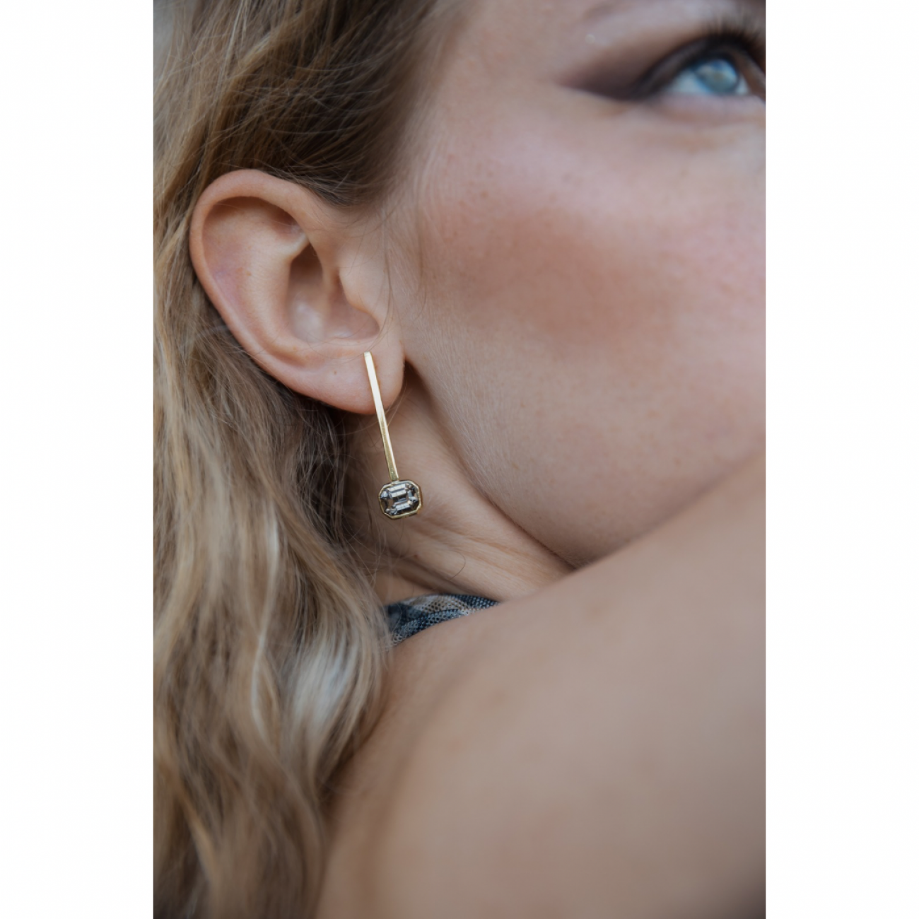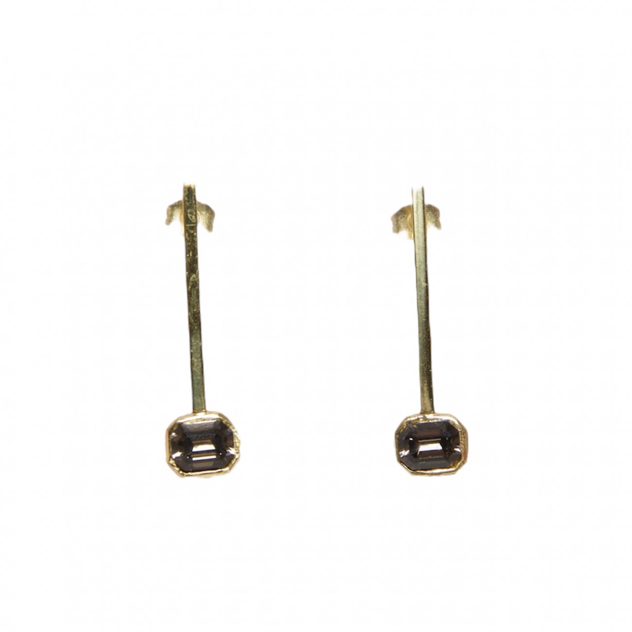 Orecchini in bronzo motivo lineare con finale in pietra sintetica.
