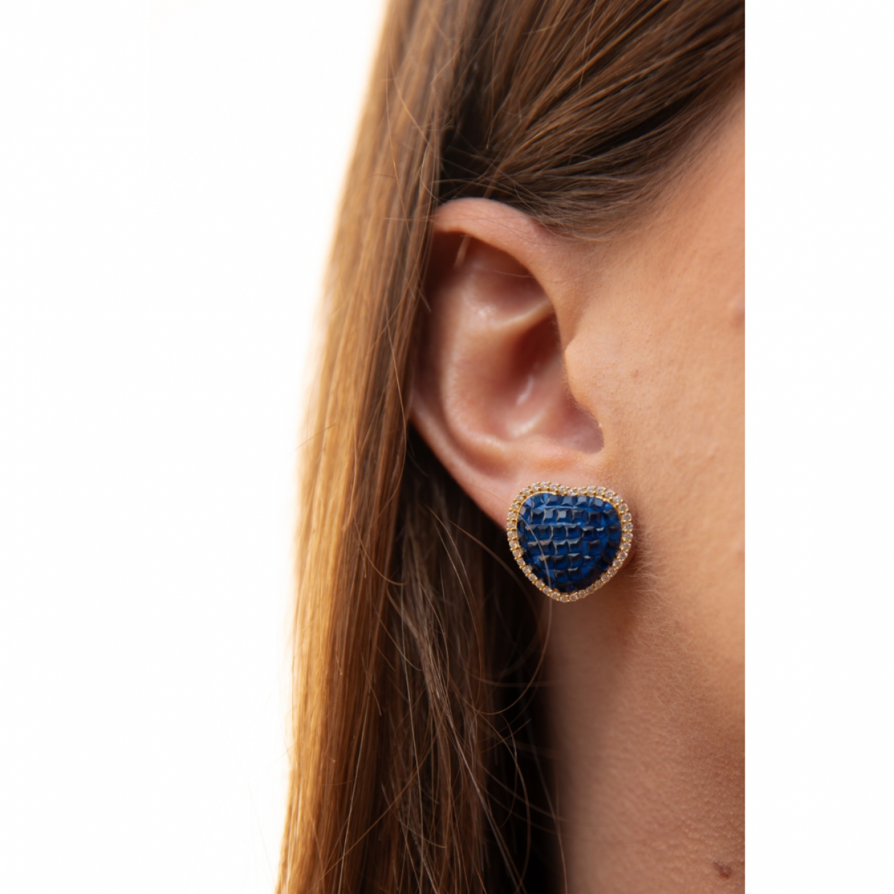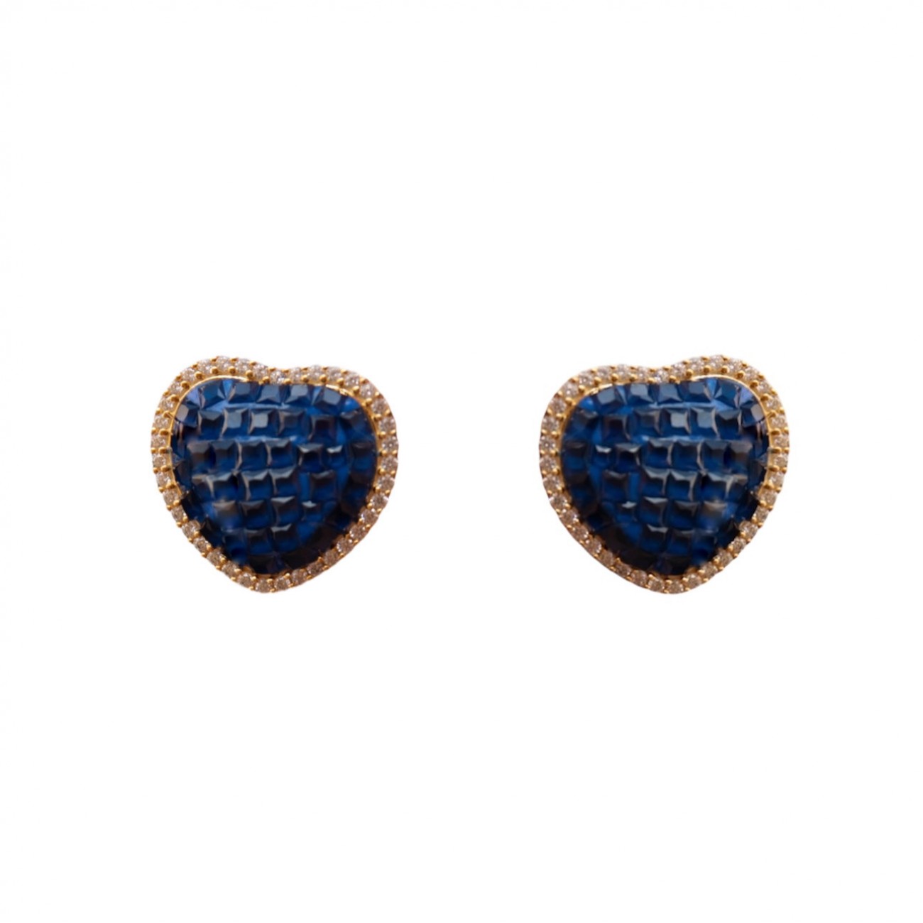 Orecchini a forma di cuore in argento 925 e zirconi con pietre blu.